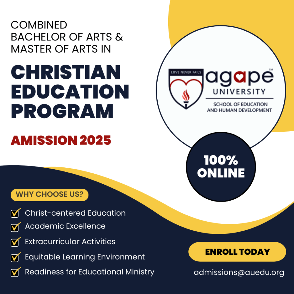 Agape University is a private institution of Christian higher education dedicated to excellence in transformative teaching and learning, fostering the holistic development of students beyond academic achievements.