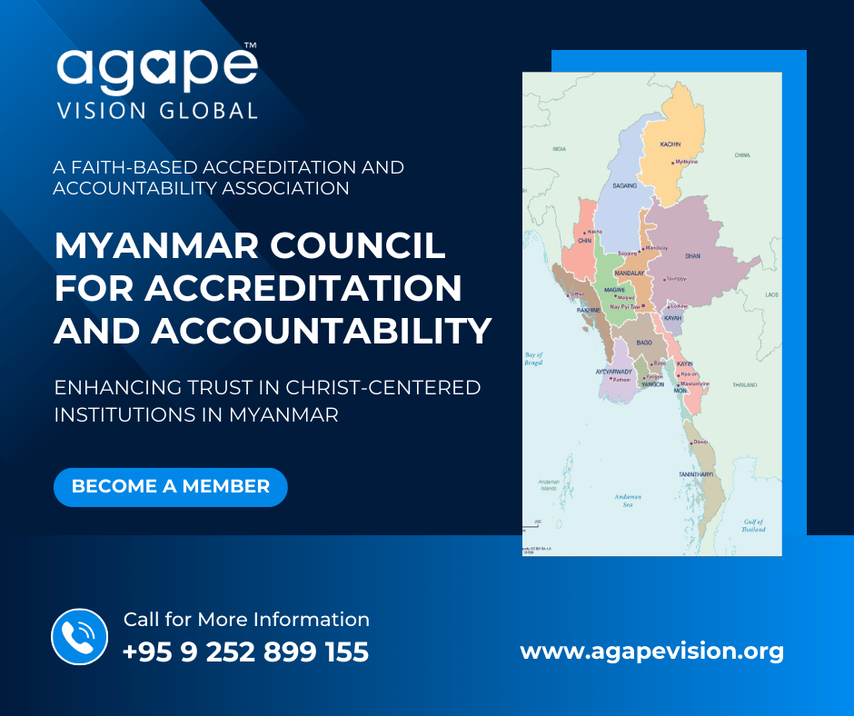 As we prepare to register an accreditation and accountability association as a Private Company Limited by Guarantee under Myanmar Law, we invite Legal Experts to serve on the Legal Advisory Board of the Myanmar Council for Accreditation and Accountability and contribute your expertise to enhance trust in Christ-centered institutions in Myanmar.